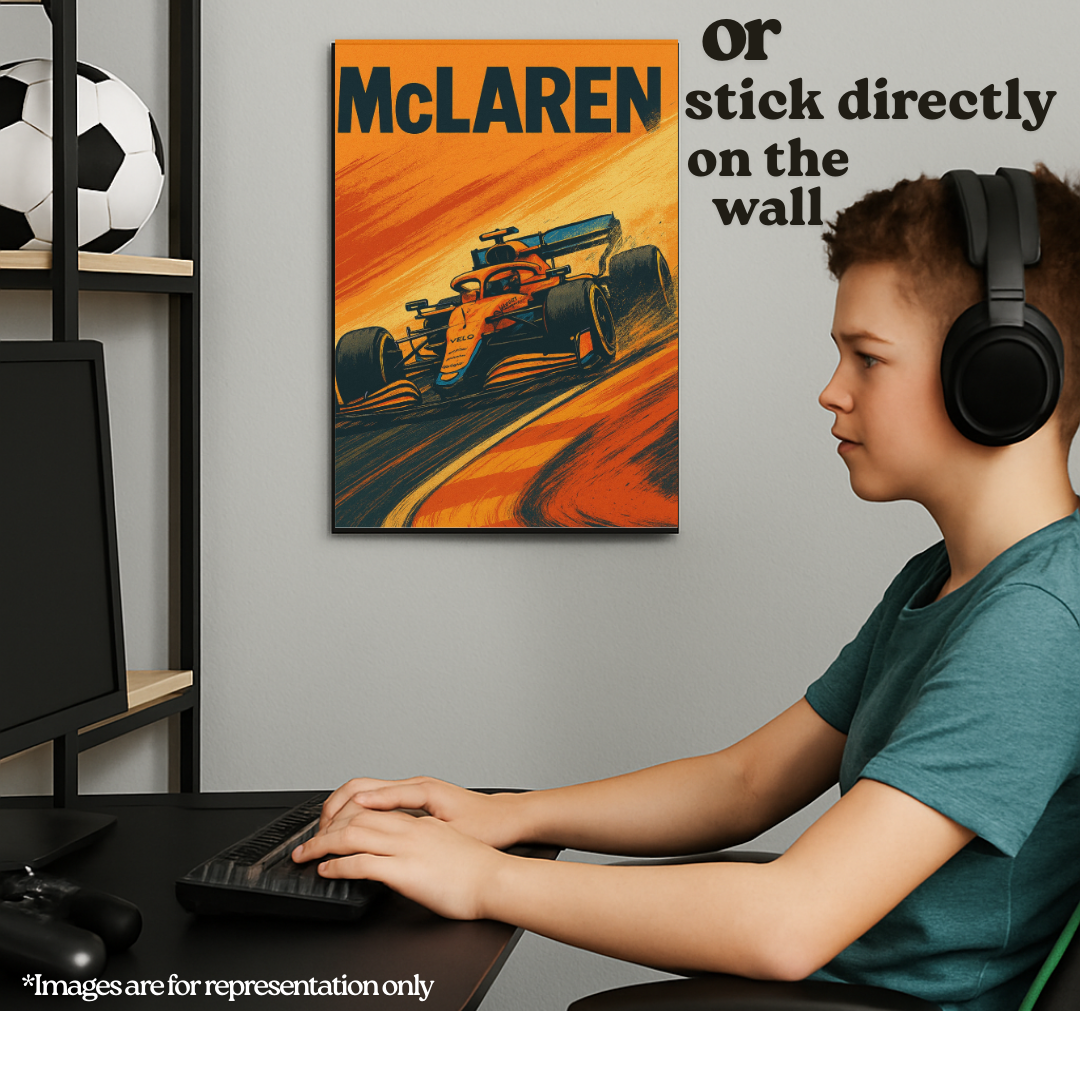 This artwork is inspired by Formula 1 and motorsport culture. It is not affiliated with or endorsed by McLaren Racing or Formula 1.